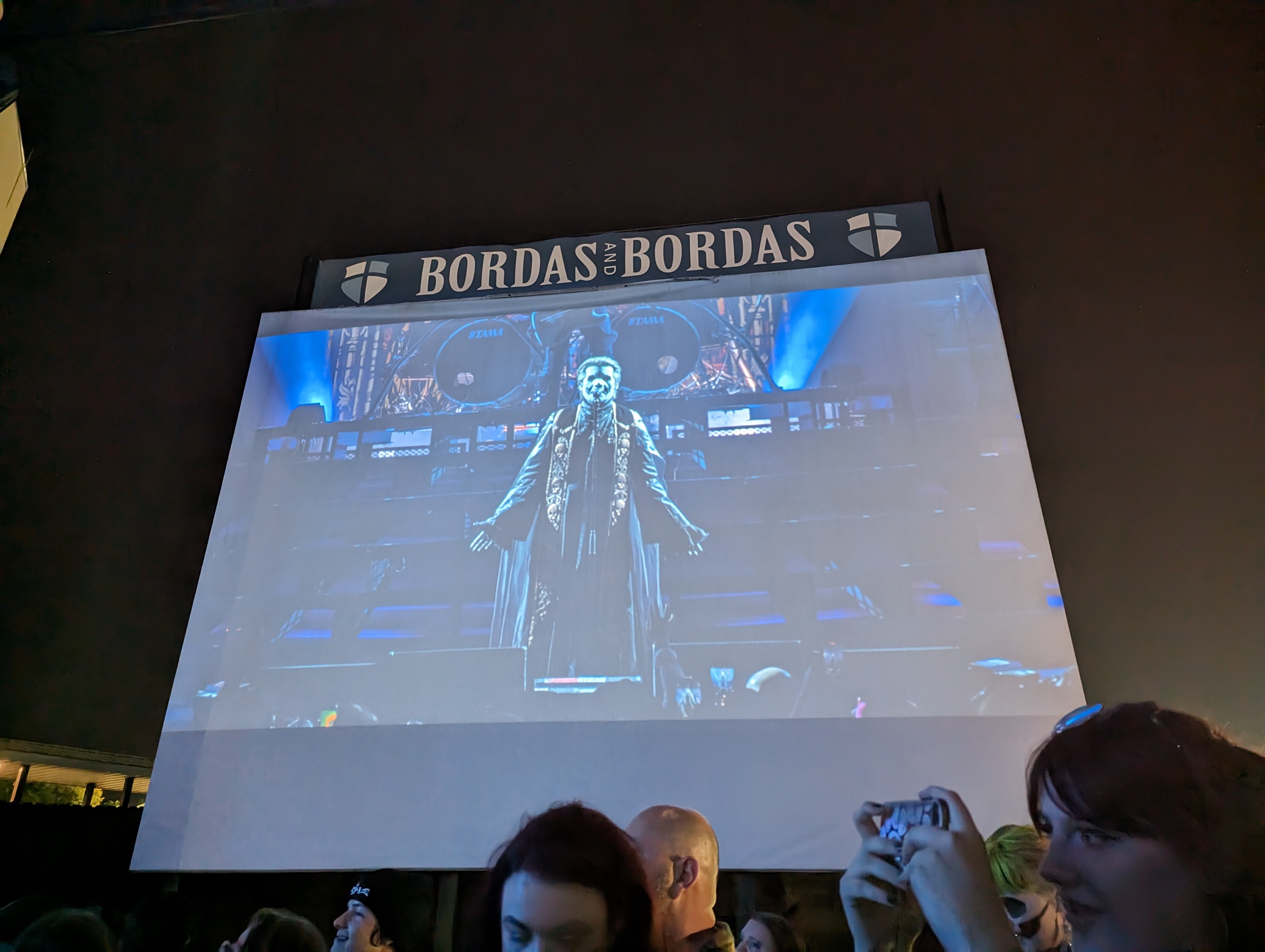 The trek back out saw us getting soaked once more. It had honestly seemed as though I had just dried off. The crowd was full of people with mixed feelings. Some were elated by the show. Some were devastated at the cancellation of the encore. I had gotten their encore twice before, so I didn’t feel completely jipped. Though, the encore is comprised of two of my favorite Ghost songs. And I was disappointed my sister-in-law didn’t get to experience “Dance Macabre” and “Square Hammer.”