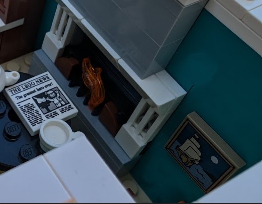 The things that drew me to this set and made it a must-have was the fact that it was a book shop – a no brainer – and the turquoise row house next door. I adore the charm of bookshops, as well as row houses. When I put this set together, I quickly learned that my favorite thing about Modular sets was seeing what sort of “ordinary” Lego pieces they would use to create traditional architectural elements.