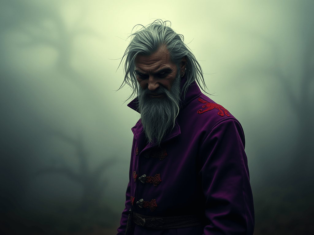 Fadiya turned to find the speaker. It was not difficult. They stood out like a sore thumb against the dingy, murky landscape, their purple coat with the red embroidery glowing. A chill ran down her spine as they ran a hand through their elegantly mussed silver-white hair and smoothed their pointed beard with the other.