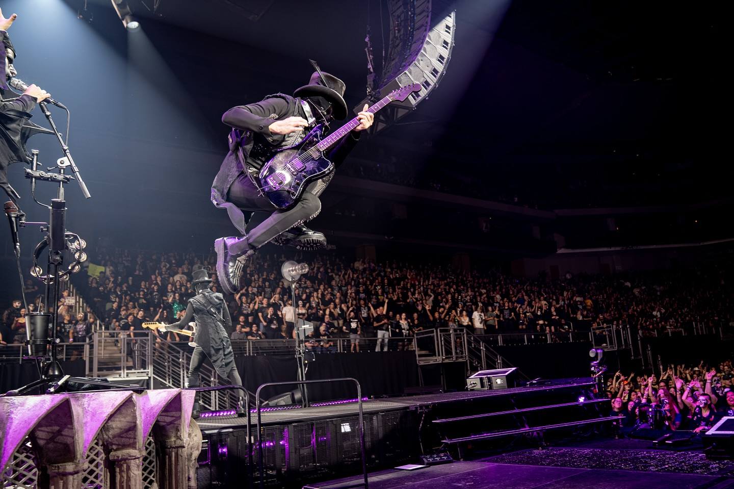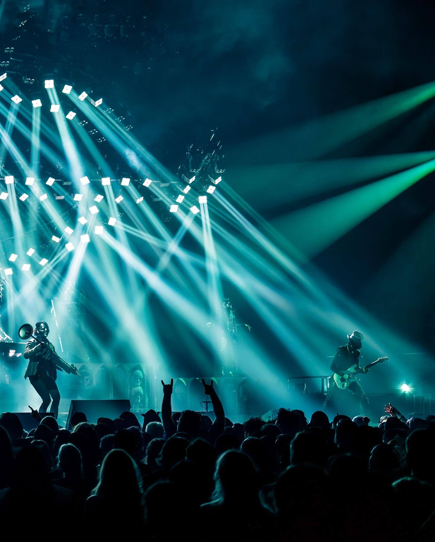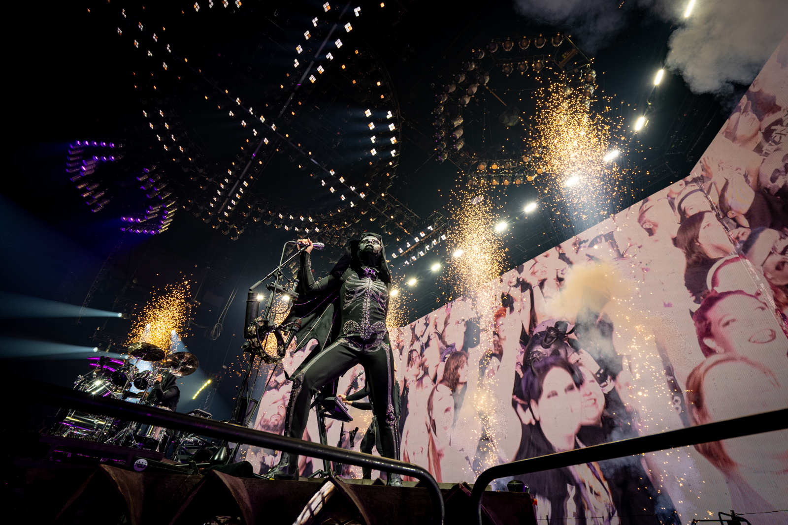 The staging was incredible, and while I missed the longer bit jutting out a bit more into the crowd, I feel like the depth of the stage and the designs of the backgrounds, and lights made up for it. I felt a significant lack in the colored, dramatic beams of light illuminating the stage from previous shows. However, our darling Toblerone Fudge, introduced something else for Skeletour: a light Grucifix.