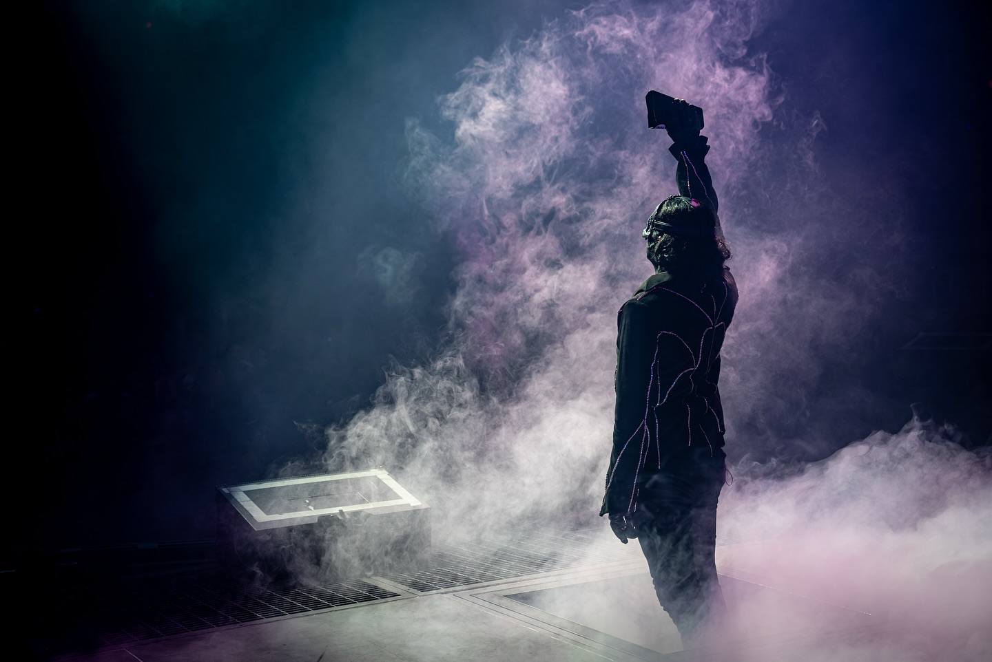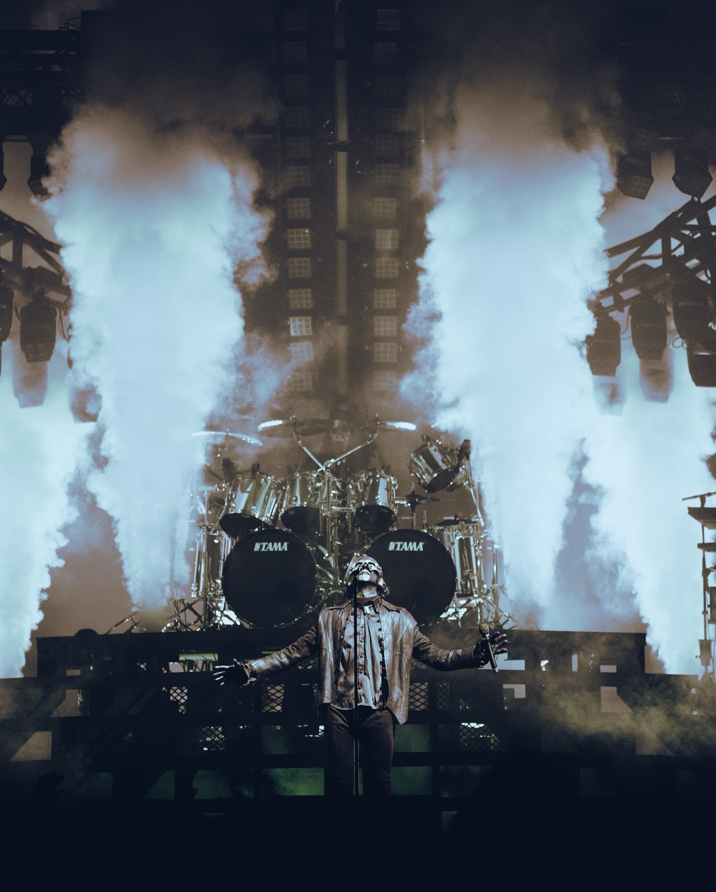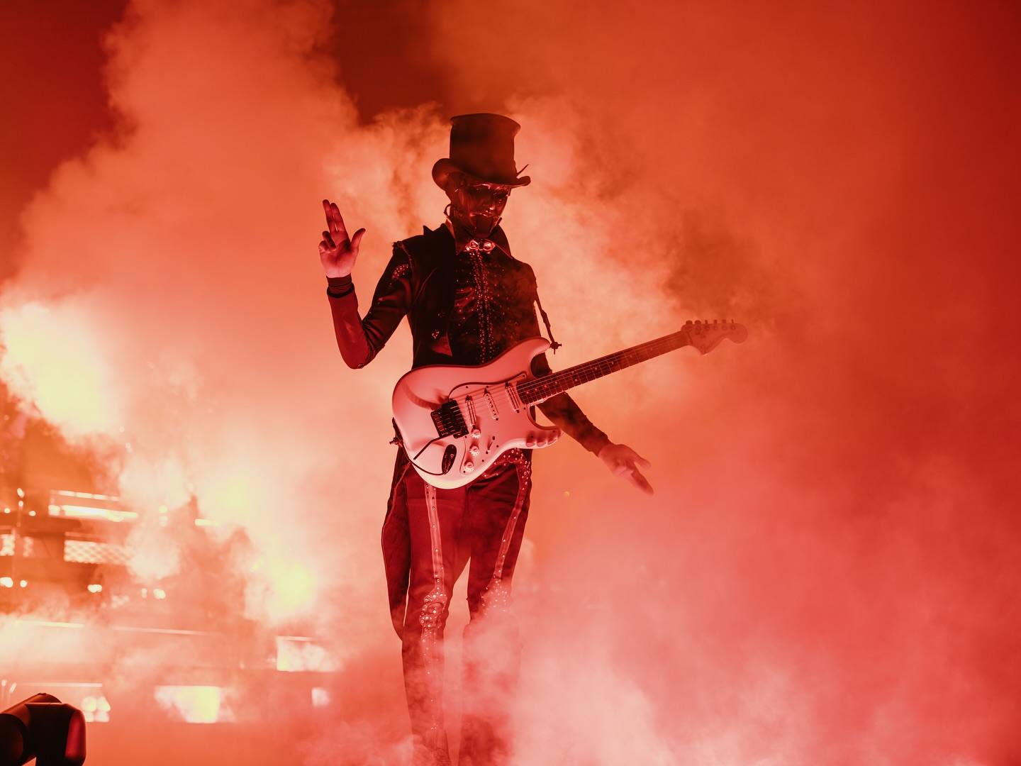 The staging was incredible, and while I missed the longer bit jutting out a bit more into the crowd, I feel like the depth of the stage and the designs of the backgrounds, and lights made up for it. I felt a significant lack in the colored, dramatic beams of light illuminating the stage from previous shows. However, our darling Toblerone Fudge, introduced something else for Skeletour: a light Grucifix.