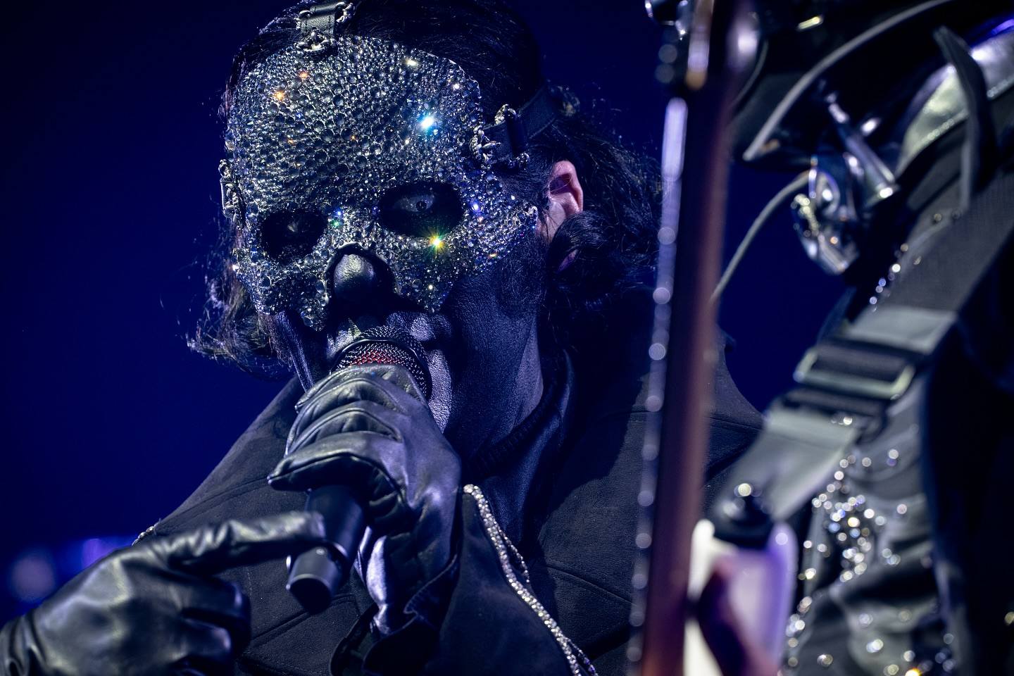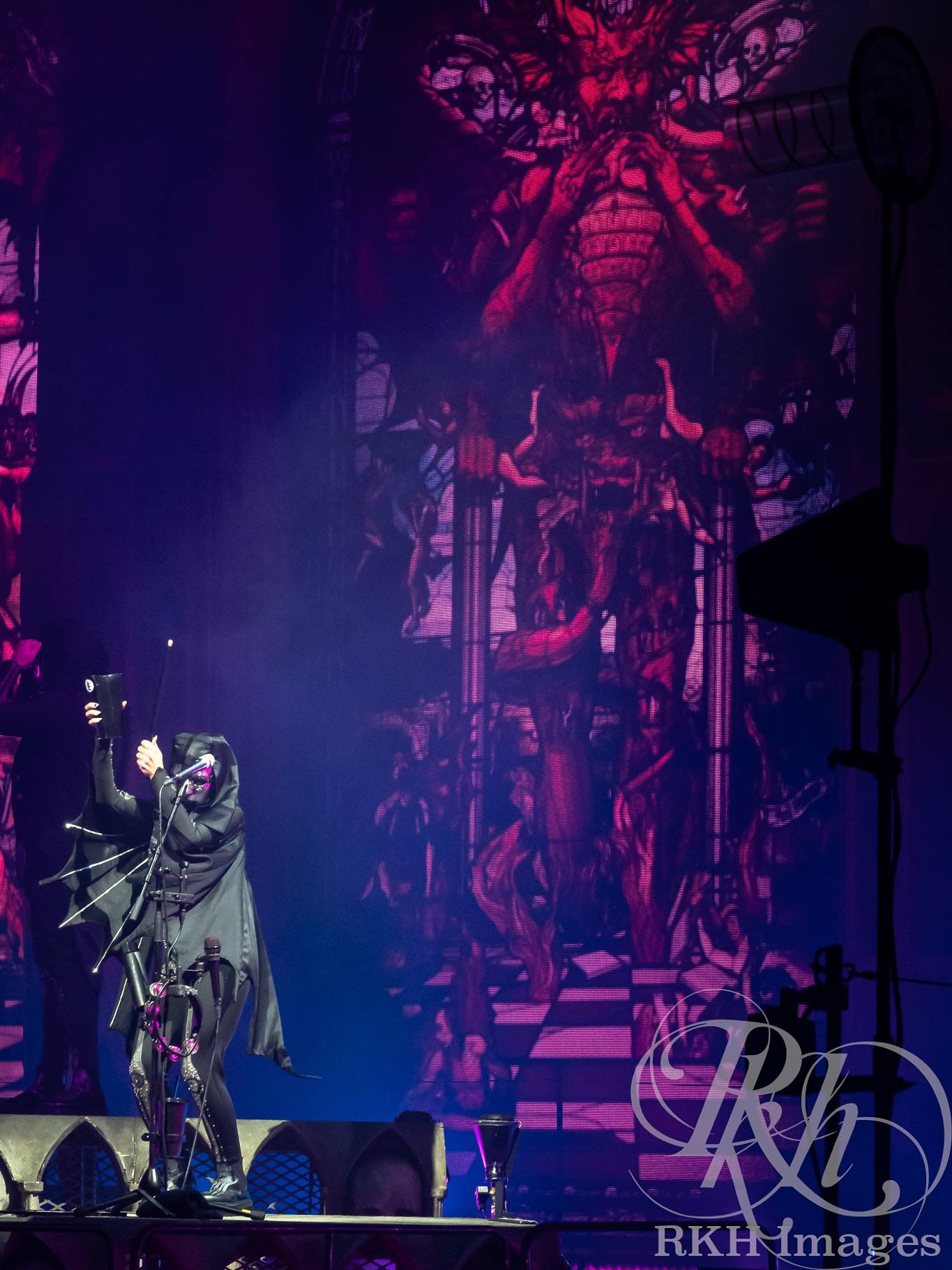 Thankfully, I was saved from dwelling on it too much, as at 8:15, some light music began, and the massive, fully-stage-encompassing, black, velvet-looking?, curtain was dropped. It was time to get Satanized.